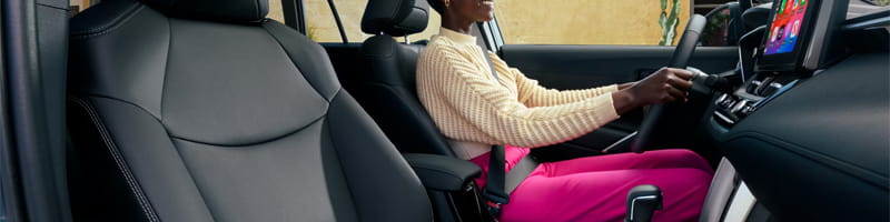 The seating in the Corolla Cross Hybrid is designed to support a range of travel experiences. Features like available heated front seats and a 10-way power-adjustable driver’s seat with lumbar support cater to comfort during longer drives and in colder climates. Higher trims are equipped with SofTex®-trimmed seating, which offers the luxury look and feel of leather with the added durability and easy maintenance of synthetic materials, enhancing both comfort and interior aesthetics.